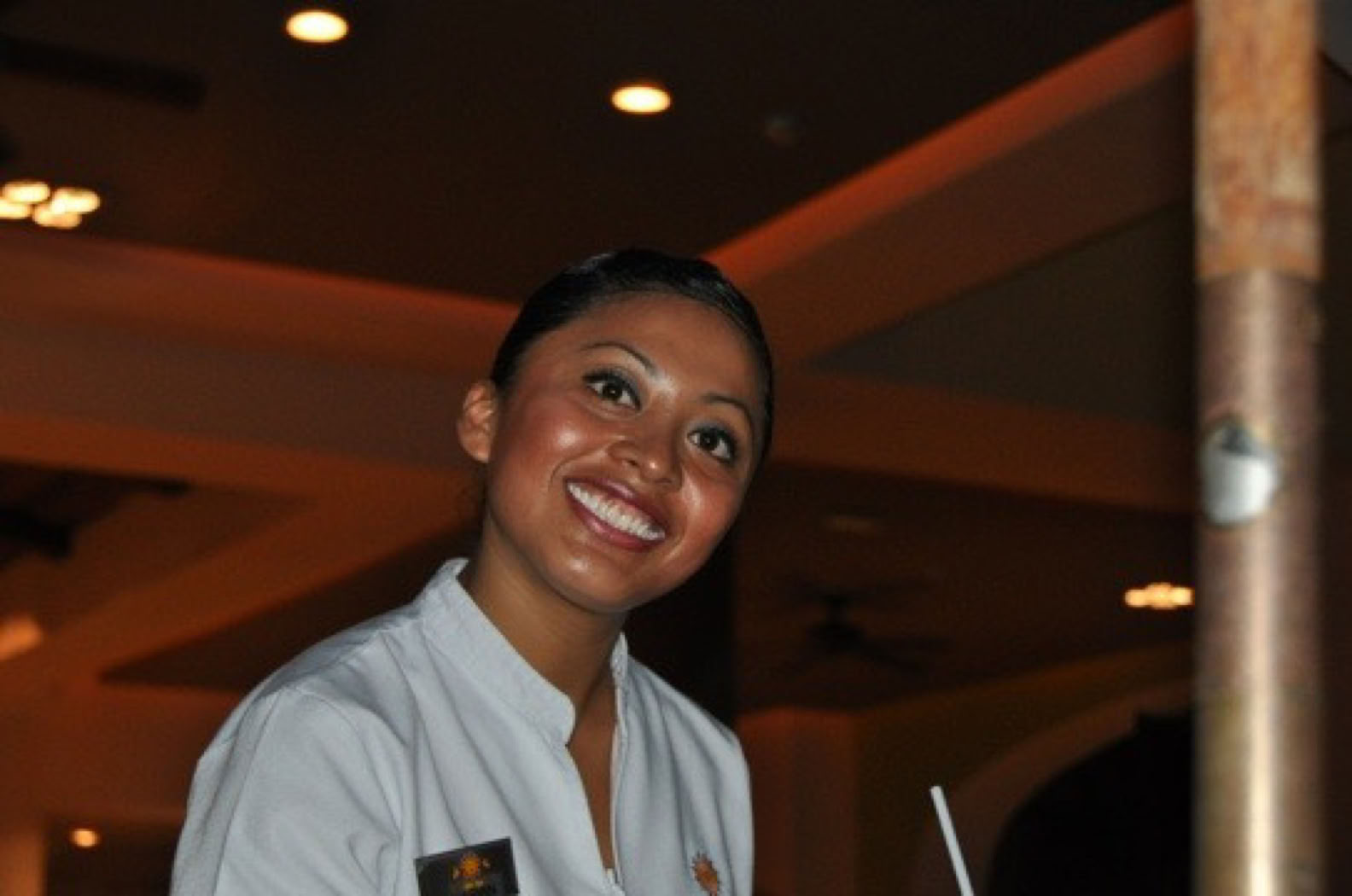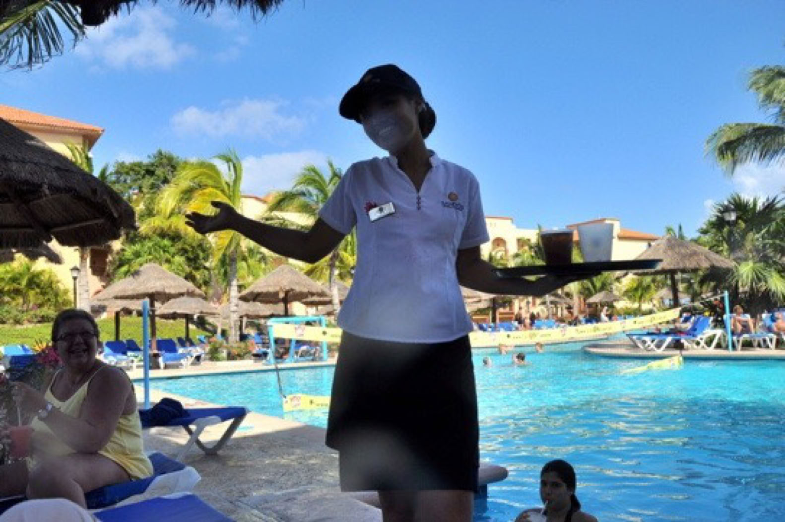 Jenta som kommer bort til oss ved bassenget for å ta imot bestilling på drikke er bare helt herlig, sikkert ikke mer enn 20, knallblid, og i dag ble det et lite norsk kurs.