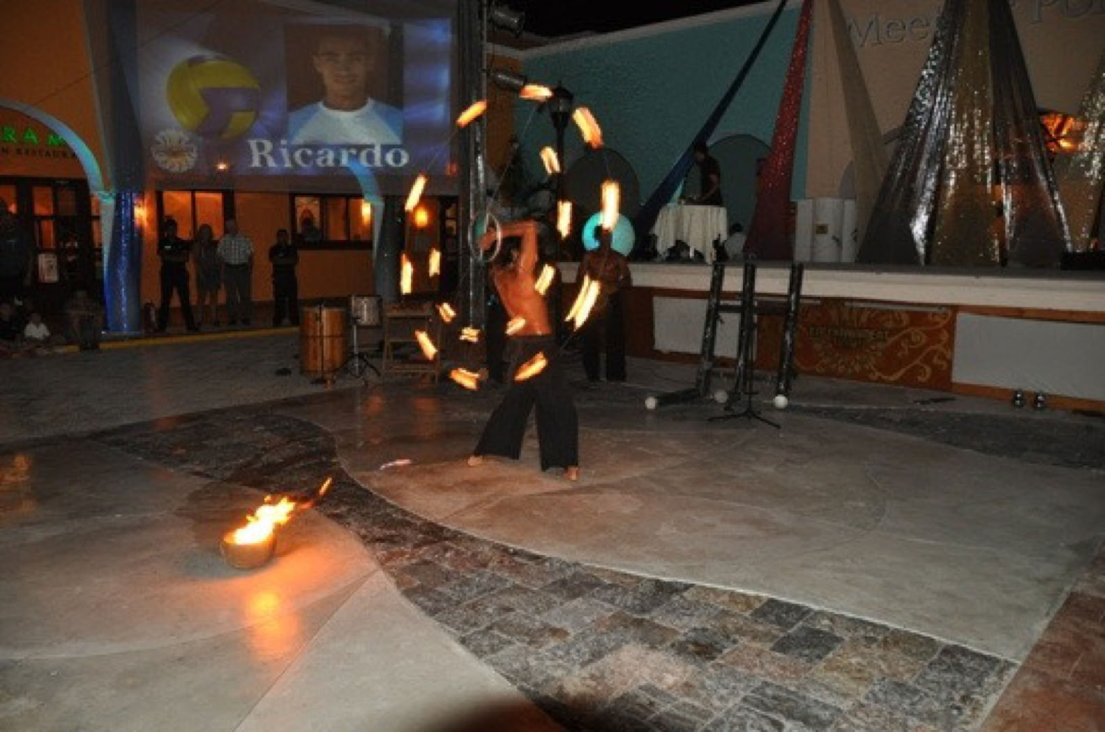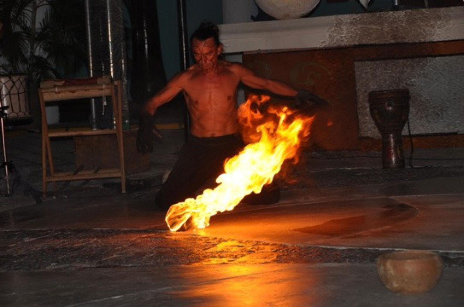 Kvelden gikk videre med et flammeshow ute på gulvet, der var det noen brunsvidde personer som fektet med flammer, de var helt gale, virkelig et fantastisk show, som mange av de andre showene vi har sett her.