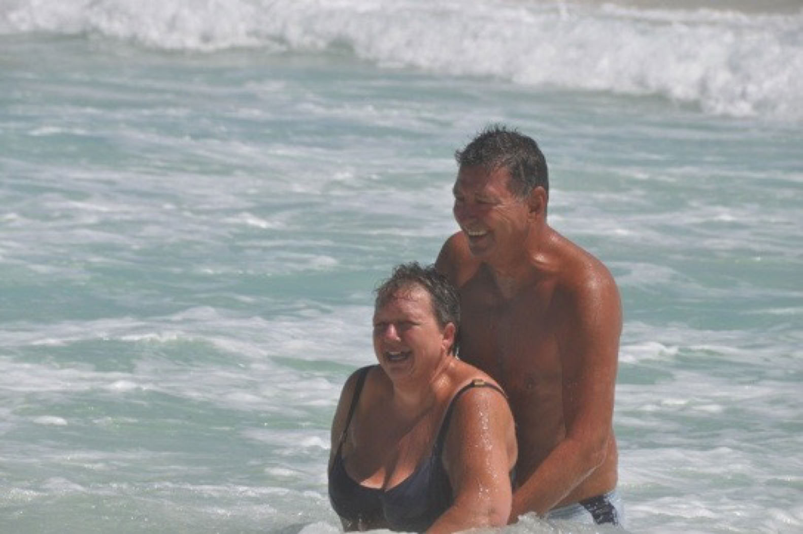 Brit koste seg og da var det både armer å ben som var i aktivitet, hun smilte som en sol. Det er ikke mange koner som forsyner ektemannen med senioritas.